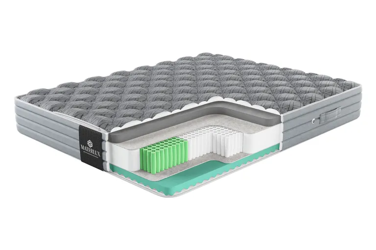 Итальянский матрас с ортопедическим эффектом MaterLux Abriola из серии New Elite — современный подход к комфорту, где искусственные материалы работают на благо вашего здоровья и природы. Благодаря продуманному составу, в котором эластичные пены сочетаются с пружинной системой, матрас долгие годы сохраняет свежесть и здоровую среду для сна. Точечная ортопедическая поддержка Для этого матраса мы выбрали премиальную пружинную систему Molla Super Protezione 1000. Пружины реагируют на любые изменения нагрузки и смену позы спящего, идеально подстраиваются под силуэт, поддерживают позвоночник в физиологически правильном положении. Чехлы для пружин мы изготовили из файбертекса — материала, который значительно превосходит бюджетные аналоги по прочности и эластичности. Благодаря его способности эффективно поглощать вибрации и сохранять целостность даже при интенсивных нагрузках, матрас сохраняет полезные свойства до 20 лет. Безупречный комфорт с обеих сторон Стороны матраса отличаются по наполнению и свойствам, но обе умеренно-мягкие. Schiuma Con Carbone — высокоэластичная пена с угольными частицами бамбука. Угольная пена эластична, но при этом упруга, она дает стабильную поддержку телу и делает спальное место комфортным. Уголь в составе нейтрализует запахи и усиливает антибактериальные свойства матраса. Schiuma Effetto Massaggio — высокоэластичная пена с текстурированной поверхностью, создает расслабляющий массажный эффект. Материал расположен верхним слоем с противоположной стороны матраса. Дополнительные материалы для прочности матраса Feltro Termico — плотный термофиксированный фетр из шерсти, пуха и хлопка. Мы прокладываем слой фетра между пружинами и наполнителями. Материал защищает слои от давления пружинами, поэтому матрас служит дольше, сохраняет упругость и ортопедические свойства. Короб из пены Natural Foam Solido — плотная пена по периметру блока пружин и слоев наполнителей. Усиливает края матраса.