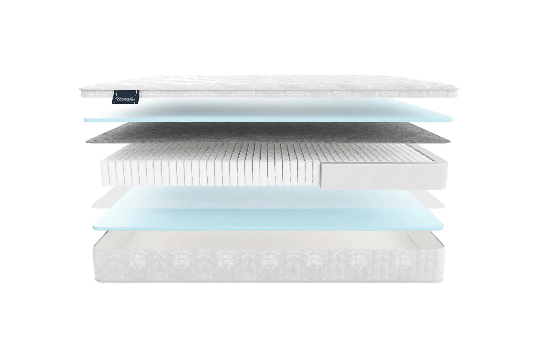 Пружинный блок из независимых пружин точно следует контурам тела и гасит вибрации от партнёра. Идеально для людей с небольшим весом и тех, кто предпочитает мягкую поверхность.