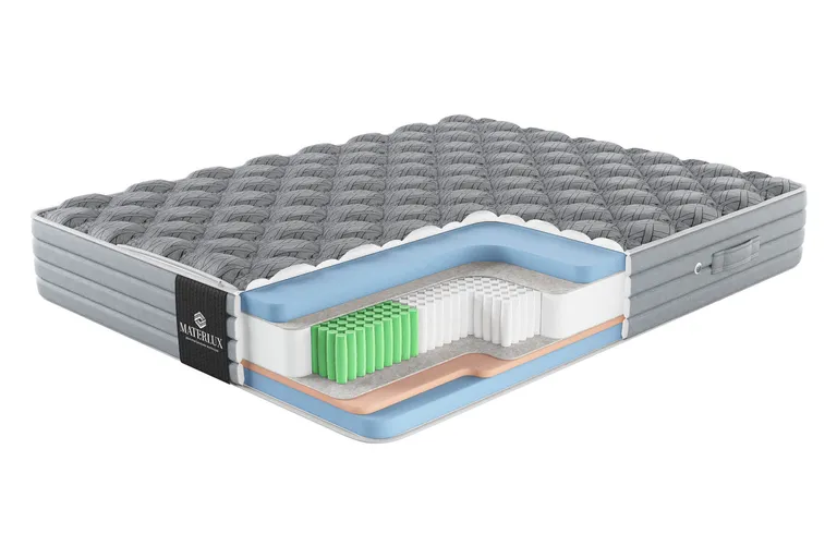 Анатомический матрас MaterLux Asti — одна из самых мягких моделей коллекции New Elite. Матрас подарит ощущение безмятежного уюта и невесомости, а позвоночник получит надежную поддержку. Модель с деликатной обволакивающей поверхностью будет особенно приятна тем, кто испытывает дискомфорт в суставах и мышцах. Точечная поддержка Для этого матраса мы выбрали премиальную пружинную систему Molla Super Protezione 1000. Пружины моментально откликаются на изменения нагрузки и смену позы, точно подстраиваются под контуры тела, удерживают позвоночник в естественном, анатомически правильном положении. Чехлы для пружин мы изготовили из файбертекса — материала, который значительно превосходит бюджетные аналоги по прочности и эластичности. Благодаря его способности эффективно поглощать вибрации и сохранять целостность даже при интенсивных нагрузках, матрас сохраняет полезные свойства до 20 лет. Комфортные наполнители Плотность сторон матраса отличается лишь незначительно — одна поверхность кажется немного мягче, чем другая, но обе делают сон удобным в любом положении. Schiuma Memory Comforto — вязкоэластичная пена с эффектом памяти меморикс. В отличие от других материалов, пена практически не чувствуется под телом и создает ощущение невесомости, абсолютного уюта и мягкости. Мы разместили слой Schiuma Memory Comforto сразу под чехлом с обеих сторон матраса. Natural Foam Medio — искусственная пена, аналог натурального латекса. Она размещена с одной стороны под мемориксом, чтобы сделать поверхность чуть более упругой, умеренно-мягкой. Дополнительные материалы для прочности матраса Feltro Termico — термофиксированный мягкий фетр из шерсти, пуха и хлопка. Мы прокладываем его между пружинной системой и наполнителями. Материал защищает слои от давления пружин, при этом не влияет на жесткость спальной поверхности. Матрас служит дольше, сохраняет упругость, комфорт и ортопедические свойства много лет. Короб из пены Natural Foam Solido — плотная пена по периметру блока пружин и слоев наполнителей. Усиливает края матраса.