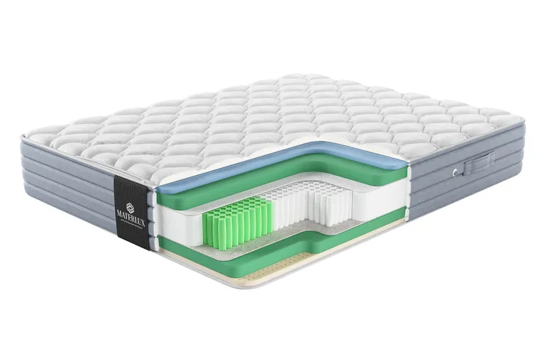 Матрас MaterLux Babila из коллекции Elite Relax — гармония комфорта и поддержки. Умеренно-мягкая поверхность дарит уют, но без излишней мягкости, а прочная ортопедическая система надежно удерживает тело в правильном положении. Отличный выбор для людей любой комплекции и пар с разницей в весе. Точечная ортопедическая поддержка Для этой модели мы выбрали премиальную пружинную систему Molla Super Protezione 1000. На каждого спящего приходится более 1000 независимых пружин, они реагируют на любые изменения нагрузки и положения тела. Система максимально точно подстраивается под силуэт, сохраняет физиологически правильное положение позвоночника независимо от вашей комплекции и позы, в которой вы спите. Усиленные пружины — комфортное решение для пар с разницей в весе. Чехлы для пружин мы изготовили из файбертекса — материала, который значительно превосходит бюджетные аналоги по прочности и эластичности. Благодаря его способности эффективно поглощать вибрации и сохранять целостность даже при интенсивных нагрузках, матрас сохраняет полезные свойства до 20 лет. Идеальное сочетание уюта, мягкости и поддержки Schiuma Memory Conforto — вязкоэластичная пена с эффектом памяти меморикс. В отличие от других наполнителей, пена практически не чувствуется под телом и создает ощущение невесомости, абсолютного уюта. Мы разместили слой Schiuma Memory Conforto сразу под чехлом с одной стороны матраса. Lattice Fresco Naturale — натуральный бельгийский латекс премиум-класса. Он расположен под чехлом с другой стороны. Эта поверхность комфортная и довольно упругая, без ощущения глубокого погружения. Ecologic Onda Resistente — премиальная пена элакс, которая значительно превосходит другие материалы по эластичности. За счет особой структуры с микроячейками разного размера наполнитель точно подстраивается под тело, создает идеальный баланс мягкости, комфорта и поддержки. Главная особенность пены в том, что она одинаково комфортна людям совершенно разной комплекции. Слои элакса с обеих сторон находятся под латексом и мемориксом для большего комфорта и прочности матраса. Дополнительные материалы для прочности матраса Feltro Termico — плотный термофиксированный фетр из шерсти, пуха и хлопка. Мы прокладываем слой фетра между пружинами и наполнителями. Материал защищает слои от давления пружинами, поэтому матрас служит дольше, сохраняет упругость и ортопедические свойства. Rafforzamento Dei Bordi Su Perimetro — короб из пены Natural Foam Solido. Плотная пена по периметру блока пружин и слоев наполнителей усиливает края матраса.