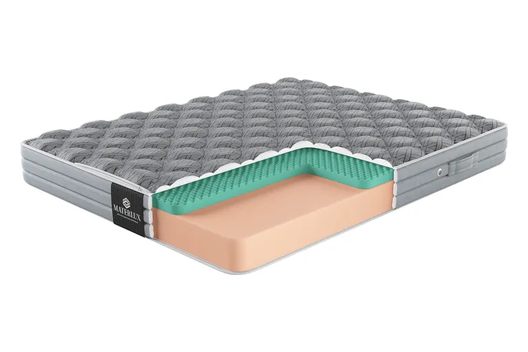 Матрас с ортопедическим эффектом MaterLux Cesano из коллекции New Elite — это итальянская нежность и комфорт в каждой детали. Основа из воздушной пены и массажная поверхность создают эффект приятного расслабления, даря ощущение полного покоя. Беспружинная ортопедическая основа Natural Foam Medio — искусственная пена, похожая по свойствам на натуральный латекс. В матрасе мы использовали высокий блок этого наполнителя. Пена эластичная, но при этом упругая, точно подстраивается под изгибы тела, равномерно распределяет нагрузку по поверхности матраса. Независимо от позы, в которой вы спите, позвоночник сохранит физиологически правильное положение. У пены средняя жесткость и у той стороны, где она находится непосредственно под чехлом, жесткость тоже средняя. Микромассаж для максимального расслабления Эрголатекс Schiuma Effetto Massaggio — высокоэластичная пена с текстурированной поверхностью, создает расслабляющий массажный эффект. Мы разместили ее с одной стороны от Natural Foam Medio. Эта поверхность будет ощущаться мягче и уютнее. Безупречная гигиена спального места Оба наполнителя имеют пористую структуру, благодаря чему они хорошо пропускают воздух и остаются эластичными. Пены быстро восстанавливают форму после нагрузки и словно «дышат», поддерживая постоянную вентиляцию. Эти свойства наполнителей помогают избежать накопления влаги и запахов, сохраняют комфортную температуру и свежесть всю ночь.