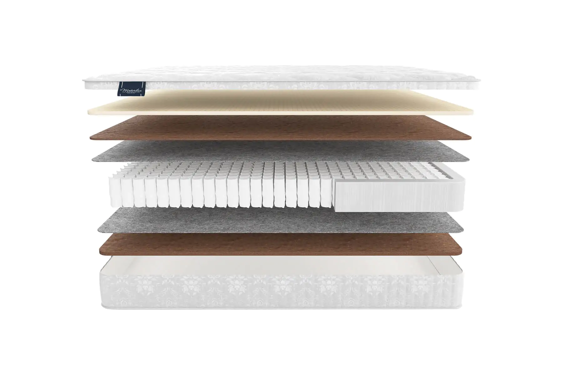 Независимые пружины обеспечивают точечную поддержку каждой зоны тела и бесшумную работу. Средняя жёсткость обеспечивает баланс комфорта и ортопедической поддержки.