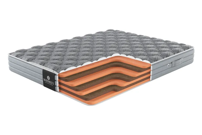 Матрас с ортопедическим эффектом MaterLux Dolce из коллекции New Elite создан для того, чтобы тело расслабилось, а позвоночник оставался в правильном положении всю ночь. Слои эластичной пены и премиальной кокосовой койры чередуются, создавая ту самую гармонию между упругостью и комфортом. Надежная ортопедическая поддержка и анатомический эффект Эта беспружинная модель коллекции отличается повышенной жесткостью, сохраняя при этом высокий уровень комфорта. Natural Foam Rigido — высокоплотная пена повышенной прочности, искусственный аналог натурального латекса. В матрасе четыре слоя этого материала. Он точно адаптируется к контурам тела, деликатно, без излишнего давления поддерживает позвоночник, суставы и мышцы. Supporto Naturale Plus — три слоя высокоплотной кокосовой койры премиум-класса, расположенные между слоями пены. Койра придает матрасу выраженные ортопедические свойства и жесткость, делает его устойчивым к высоким нагрузкам, долговечным. Безупречная гигиена спального места Множество микропор в пене, волокнистая структура койры хорошо пропускают воздух, выводят лишнее тепло и влагу, позволяя матрасу оставаться свежим и гигиеничным на долгие годы. Кокосовая койра содержит природный антибактериальный компонент — лигнин. Лигнин защищает матрас от микроорганизмов, предотвращая рост бактерий, плесени.