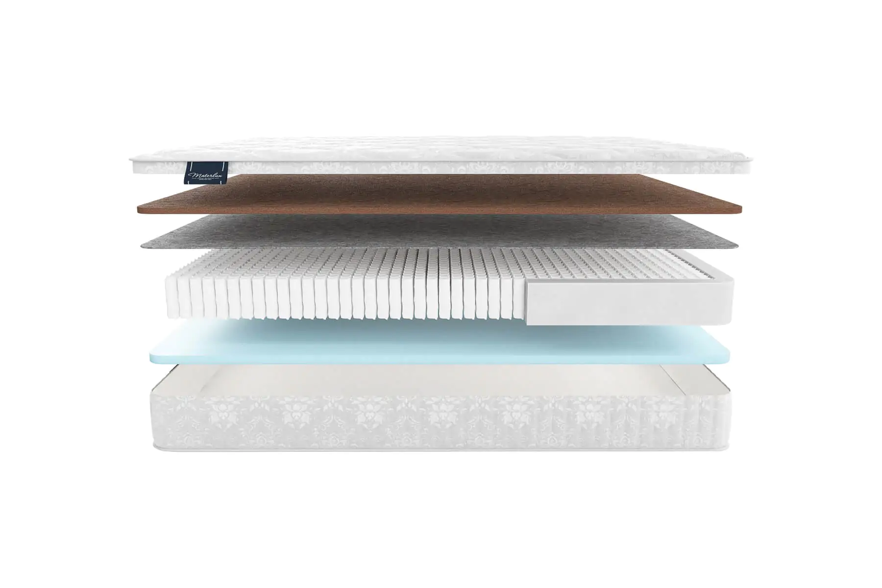 Пружинный блок из независимых пружин точно следует контурам тела и гасит вибрации от партнёра. Средне-жёсткий — баланс поддержки и комфорта, отлично подходит для спины и живота.