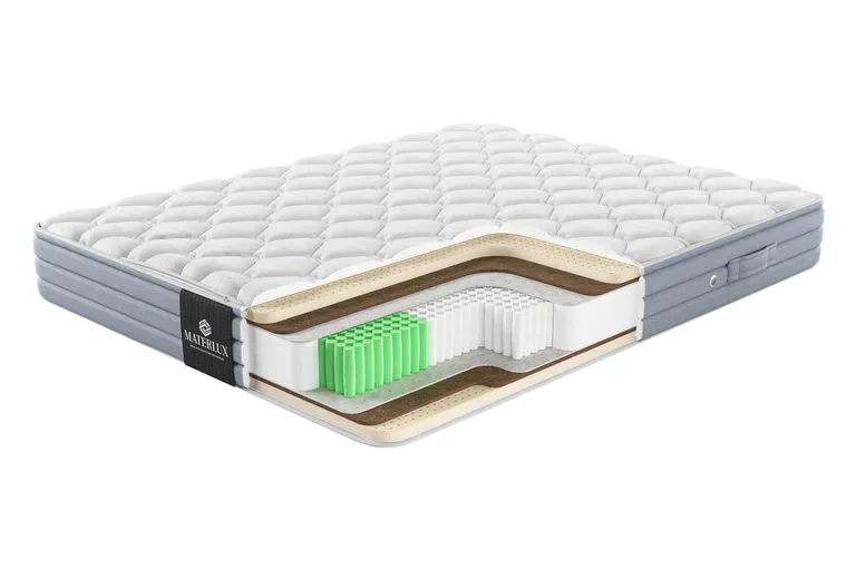 Матрас с ортопедическим эффектом MaterLux Elite входит в элитную коллекцию, изготовленную по итальянским технологиям. Универсальная модель с идеально сбалансированной средней жесткостью будет комфортна многим покупателям. Натуральные премиальные материалы сделают сон комфортным, безопасным и максимально восстанавливающим. Сочетание наполнителей У обеих сторон матраса одинаковое наполнение и средняя жесткость. Это позволит вам наслаждаться привычным комфортом, даже когда придет время перевернуть матрас. Lattice Fresco Naturale — натуральный бельгийский латекс. Латекс смягчает слои кокосовой койры, что находятся под ним, делает поверхность более уютной и комфортной для сна с приятным расслабляющим эффектом. Supporto Naturale Plus — слои высокоплотной кокосовой койры премиум-класса с обеих сторон под латексом. Койра придает матрасу упругости и жесткости, повышает ортопедические свойства. Оба материала защищают изделие от микроорганизмов благодаря природным антибактериальным свойствам. Множество микроячеек и перфорация в латексе, волокнистая структура койры улучшают вентиляцию, выводят лишнее тепло и влагу, позволяя матрасу оставаться свежим и гигиеничным на долгие годы. Точечная ортопедическая поддержка Для этой модели мы выбрали премиальную пружинную систему Molla Super Protezione 1000. На каждого спящего приходится более 1000 независимых пружин, они точечно реагируют на любые изменения нагрузки и положения тела. Система идеально точно подстраивается под силуэт, сохраняет физиологически правильное положение позвоночника независимо от вашей комплекции и позы, в которой вы спите. Чехлы для пружин мы изготовили из файбертекса — материала, который значительно превосходит бюджетные аналоги по прочности и эластичности. Благодаря его способности эффективно поглощать вибрации и сохранять целостность даже при интенсивных нагрузках, матрас сохраняет полезные свойства до 20 лет. Дополнительные материалы для прочности матраса Feltro Termico — плотный термофиксированный фетр из шерсти, пуха и хлопка. Мы прокладываем слой фетра между пружинами и наполнителями. Материал защищает слои от давления пружинами, поэтому матрас служит дольше, сохраняет упругость и ортопедические свойства. Короб из пены Natural Foam Solido — плотная пена по периметру блока пружин и слоев наполнителей. Усиливает края матраса.