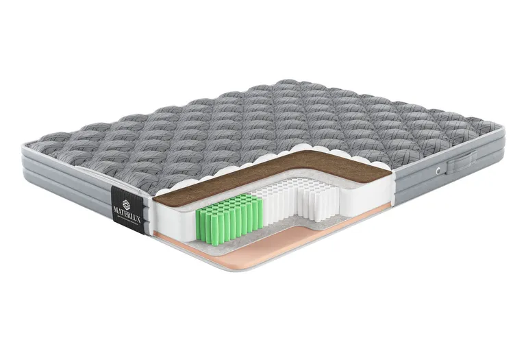 В матрасе с ортопедическим эффектом MaterLux Formia из коллекции New Elite воплотились итальянская элегантность и безупречное мастерство. Благодаря двум разным по жесткости сторонам, у вас всегда есть возможность выбрать идеальный вариант для сна. Точечная ортопедическая поддержка Для этой модели мы выбрали премиальную пружинную систему Molla Super Protezione 1000. На каждого спящего приходится более 1000 независимых пружин, они точечно реагируют на любые изменения нагрузки и положения тела. Система идеально подстраивается под силуэт, сохраняет физиологически правильное положение позвоночника независимо от вашей комплекции и позы, в которой вы спите. Чехлы для пружин мы изготовили из файбертекса — материала, который значительно превосходит бюджетные аналоги по прочности и эластичности. Благодаря его способности эффективно поглощать вибрации и сохранять целостность даже при интенсивных нагрузках, матрас сохраняет полезные свойства до 20 лет. Разное наполнение сторон Supporto Naturale Plus — высокоплотная кокосовая койра премиум-класса, мы разместили ее с одной стороны матраса. Невысокий слой сделал поверхность упругой, умеренно-жесткой. Natural Foam Medio — искусственная пена, аналог натурального латекса. Из нее мы изготовили противоположную сторону. В отличие от койры Natural Foam Medio будет ощущаться уютнее и мягче. У этой стороны средняя жесткость. Безупречная гигиена спального места Множество микропор в пене, волокнистая структура койры хорошо пропускают воздух, выводят лишнее тепло и влагу, позволяя матрасу оставаться свежим и гигиеничным на долгие годы. Кокосовая койра содержит природный антибактериальный компонент — лигнин. Лигнин защищает матрас от микроорганизмов, предотвращая рост бактерий, плесени. Дополнительные материалы для прочности матраса Feltro Termico — плотный термофиксированный фетр из шерсти, пуха и хлопка. Мы прокладываем слой фетра между пружинами и наполнителями. Материал защищает слои от давления пружинами, поэтому матрас служит дольше, сохраняет упругость и ортопедические свойства. Короб из пены Natural Foam Solido — плотная пена по периметру блока пружин и слоев наполнителей. Усиливает края матраса.