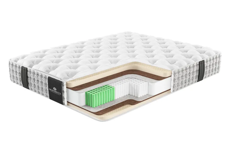 Матрас с ортопедическим эффектом MaterLux Impero из коллекции моделей VIP — это комфорт премиального уровня, созданный на основе натуральных и безопасных материалов. Идеальная гармония наполнителей Обе стороны матраса средней жесткости и состоят из материалов, свойства которых отличаются. Комбинация разных наполнителей позволяет достичь идеального баланса между поддержкой и комфортом. Lattice Fresco Naturale — натуральный бельгийский латекс премиум-класса, мы разместили его верхним слоем с обеих сторон матраса. Благодаря ему спальная поверхность идеально адаптируется к вашей фигуре, деликатно поддерживая и даря ощущение уюта и мягкости. Supporto Naturale Plus — слой высокоплотной премиальной кокосовой койры. Он проложен с обеих сторон под латексной пеной, чтобы матрас не чувствовался слишком мягким, а давал упругую опору. Точечная ортопедическая поддержка Для этого матраса мы выбрали премиальную пружинную систему Molla Super Protezione 1000. На каждого спящего приходится более 1000 независимых пружин, которые точечно реагируют на любые изменения нагрузки и положения тела. Система точно подстраивается под силуэт, сохраняет физиологически правильное положение позвоночника независимо от вашей комплекции. Для чехлов пружин мы используем файбертекс — материал, который значительно превосходит бюджетные аналоги по прочности и эластичности. Благодаря его способности эффективно поглощать вибрации и сохранять целостность даже при интенсивных нагрузках, матрас прослужит не менее 20 лет. Дополнительные материалы для прочности матраса Feltro Termico — плотный термофиксированный фетр из шерсти, пуха и хлопка. Мы прокладываем слой фетра между пружинами и наполнителями. Материал защищает слои от давления пружинами, поэтому матрас служит дольше, сохраняет упругость и ортопедические свойства. Короб из пены Natural Foam Rigido — высокоплотная сверхпрочная пена по периметру блока пружин и слоев наполнителей. Усиливает края матраса.