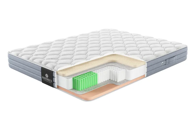 Матрас с ортопедическим эффектом MaterLux Lazio Multi из коллекции Elite — это итальянское совершенство, где природа встречается с передовыми технологиями. Модель создает идеальный баланс мягкости и поддержки, делает ваш сон глубоким и расслабляющим. Точечная ортопедическая поддержка Для этой модели мы выбрали премиальную пружинную систему Molla Super Protezione 1000. На каждого спящего приходится более 1000 независимых пружин, они точечно реагируют на любые изменения нагрузки и положения тела. Система максимально точно подстраивается под силуэт, сохраняет физиологически правильное положение позвоночника независимо от вашей комплекции и позы, в которой вы спите. Также это комфортное решение для пар с разницей в весе. Чехлы для пружин мы изготовили из файбертекса — материала, который значительно превосходит бюджетные аналоги по прочности и эластичности. Благодаря его способности эффективно поглощать вибрации и сохранять целостность даже при интенсивных нагрузках, матрас сохраняет полезные свойства до 20 лет. Наполнители для комфортного сна в любом положении Жесткость сторон матраса немного отличается, разными будут и ощущения во время сна. Вы можете выбрать наиболее комфортный для себя вариант или периодически переворачивать изделие. Lattice Fresco Naturale — натуральный бельгийский латекс премиум-класса. Мы разместили слой этого материала с умеренно-мягкой стороны. Латекс порадует вас упругой поддержкой и уютной, слегка выталкивающей поверхностью с релакс-эффектом. Natural Foam Medio — искусственная пена, похожая по свойствам на натуральный латекс, но чуть жестче и менее упругая. Из этого материала изготовлен верхний слой на противоположной стороне матраса. Жесткость этой стороны средняя. Дополнительные материалы для прочности матраса Feltro Termico — плотный термофиксированный фетр из шерсти, пуха и хлопка. Мы прокладываем слой фетра между пружинами и наполнителями. Материал защищает слои от давления пружинами, поэтому матрас служит дольше, сохраняет упругость и ортопедические свойства. Короб из пены Natural Foam Solido — плотная пена по периметру блока пружин и слоев наполнителей. Усиливает края матраса.