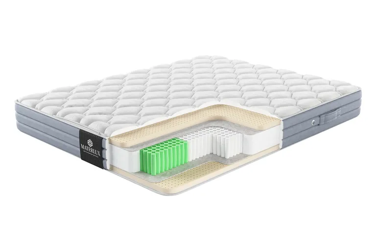 Анатомический матрас MaterLux London Multi объединяет нежность премиального латекса и надежность усиленной пружинной системы. Это идеальное сочетание делает сон комфортным, дает стабильную поддержку позвоночнику. Точечная ортопедическая поддержка Для этого матраса мы выбрали премиальную пружинную систему Molla Super Protezione 1000. На каждого спящего приходится более 1000 независимых пружин, которые точечно реагируют на любые изменения нагрузки и положения тела. Система точно подстраивается под силуэт, сохраняет физиологически правильное положение позвоночника независимо от вашей комплекции. Для чехлов пружин мы используем файбертекс — материал, который значительно превосходит бюджетные аналоги по прочности и эластичности. Благодаря его способности эффективно поглощать вибрации и сохранять целостность даже при интенсивных нагрузках, матрас прослужит не менее 20 лет. Натуральный латекс — комфорт премиум-класса Для обеих сторон матраса мы выбрали одинаковое наполнение, обе умеренно-мягкие. Переворачивая изделие, вы не заметите разницы в комфорте — вам будет удобно на любой стороне. Lattice Fresco Naturale — натуральный бельгийский латекс. Благодаря этому нежному наполнителю матрас максимально детально адаптируется к фигуре, деликатно поддерживает суставы, добавляет расслабляющий эффект. Безупречная гигиена спального места Латекс — это каучуковая пена, произведенная из сока дерева, известного как бразильская гевея. Благодаря природным свойствам каучук выступает как естественный антибактериальный барьер, который надежно защищает матрас от микроорганизмов и поддерживает его гигиеничность. Латекс с микропористой структурой и дополнительной перфорацией по всей поверхности гарантирует непрерывную вентиляцию, предотвращает накопление влаги и запахов. Благодаря этому сохраняется комфортная температура и ощущение свежести всю ночь. Дополнительные материалы для прочности матраса Feltro Termico — плотный термофиксированный фетр из шерсти, пуха и хлопка. Мы прокладываем слой фетра между пружинами и наполнителями. Материал защищает слои от давления пружинами, поэтому матрас служит дольше, сохраняет упругость и ортопедические свойства. Короб из пены Natural Foam Solido — плотная пена по периметру блока пружин и слоев наполнителей. Усиливает края матраса.