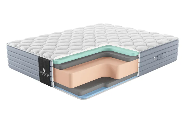 Беспружинный матрас MaterLux Marelli из коллекции Elite Relax за счет впечатляющей высоты в 36 см выглядит эффектно, он поднимает отдых на новый уровень. В многослойной структуре модели сочетаются анатомические пены, которые подстраиваются под тело, создают идеальный баланс уюта и ортопедической поддержки. Свежесть и комфорт Обе стороны матраса дарят умеренную мягкость с легким эффектом погружения. При этом одна из них чуть плотнее. Вы можете выбрать ту, которая подходит вам больше, или время от времени переворачивать матрас. Memory Effetto Gel — элитная пена с эффектом памяти и охлаждающим гелем, который создает идеальный микроклимат спального места. Она практически не чувствуется под телом и создает ощущение невесомости, абсолютного уюта. Мы разместили этот материал верхним слоем с одной стороны, чтобы сделать поверхность комфортной и максимально расслабляющей. Schiuma Memory Conforto — вязкоэластичная пена с эффектом памяти меморикс. Она похожа по ощущениям на Memory Effetto Gel, но без охлаждающих свойств. Слой Schiuma Memory Conforto размещен сразу под чехлом на противоположной стороне матраса. Schiuma Con Carbone — это высокоэластичная пена с частицами бамбукового угля. Она расположена под слоями пен с эффектом памяти. Наполнитель придает матрасу упругости и улучшает гигиенические свойства. Материал помогает нейтрализовать запахи и предотвращает накопление влаги. Natural Foam Medio — высокоэластичная пена, которая повторяет свойства натурального латекса. Мы разместили высокий монолит этого наполнителя в основе матраса для устойчивой поддержки. Пена точно подстраивается под изгибы тела, равномерно распределяет нагрузку по поверхности. Независимо от позы, в которой вы спите, позвоночник сохранит физиологически правильное положение.