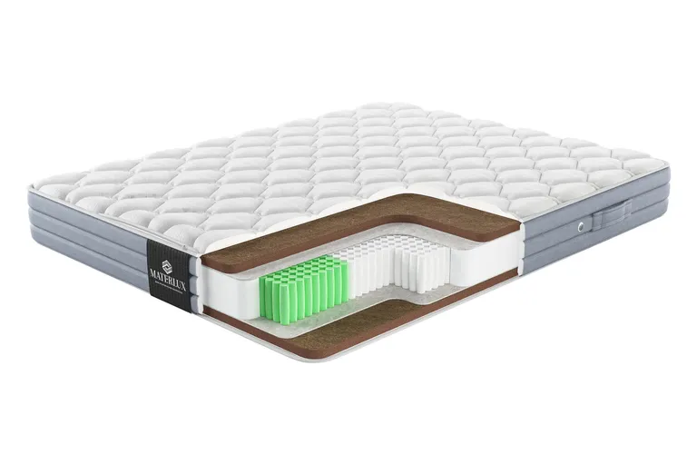 Матрас с ортопедическим эффектом MaterLux Milano из коллекции Elite сочетает в себе элегантность итальянского дизайна и природную прочность. Он подарит вам комфорт и стабильную поддержку. Ортопедический эффект блока пружин Для этой модели мы выбрали премиальную пружинную систему Molla Super Protezione 1000. Пружины моментально откликаются на изменения нагрузки и смену позы, точно подстраиваются под контуры тела, удерживают позвоночник в естественном, анатомически правильном положении. Чехлы для пружин изготовили из файбертекса — материала, который значительно превосходит бюджетные аналоги по прочности и эластичности. Благодаря его способности эффективно поглощать вибрации и сохранять целостность даже при интенсивных нагрузках, матрас прослужит вам более 20 лет. Уверенная поддержка натурального наполнителя Стороны матраса мы наполнили материалом Supporto Naturale Plus — премиальной кокосовой койрой, с пропиткой натуральным латексом. Кокосовые слои делают матрас жестким, очень упругим. Поверхность с такими свойствами подходит для профилактики некоторых заболеваний опорно-двигательного аппарата. Supporto Naturale Plus с ярко выраженным ортопедическим эффектом помогает пружинной системе равномерно распределять нагрузку по поверхности. И даже при крупной комплекции позвоночник будет находиться в естественном анатомически правильном положении. Безупречная гигиена спального места Кокосовая койра содержит лигнин — природное вещество, которое помогает защищать матрас от бактерий и плесени. Благодаря волокнистой структуре кокосового материала и пространству между пружинами, матрас хорошо пропускает воздух, поддерживает свежий и сухой микроклимат спального места. Дополнительные материалы для прочности матраса Feltro Termico — плотный термофиксированный фетр из шерсти, пуха и хлопка. Мы прокладываем слой фетра между пружинами и наполнителями. Материал защищает слои от давления пружинами, поэтому матрас служит дольше, сохраняет упругость и ортопедические свойства. Короб из пены Natural Foam Solido — плотная пена по периметру блока пружин и слоев наполнителей. Усиливает края матраса.