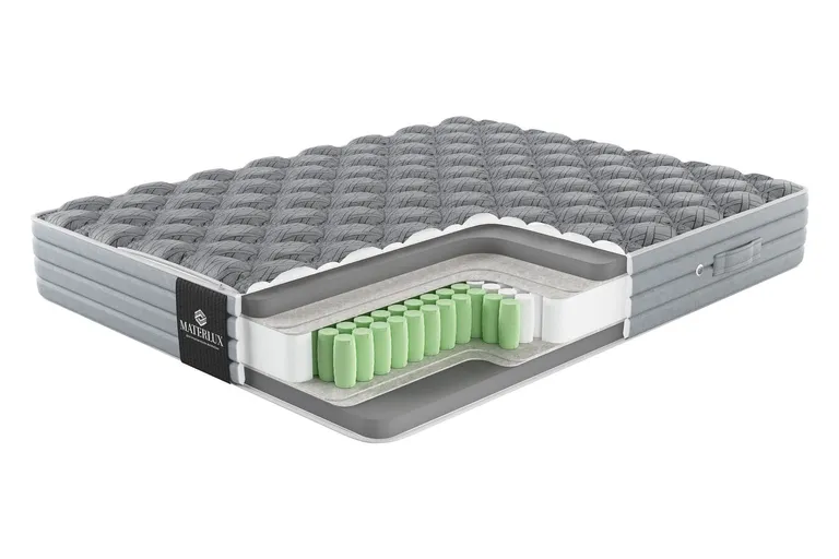 Матрас с ортопедическим эффектом MaterLux Ornago из коллекции New Elite — подарит ощущение премиального комфорта. Усиленная пружинная система в сочетании с карбоновыми пенами дает возможность людям любой комплекции и парам со значительной разницей в весе наслаждаться комфортным сном. Двойная поддержка пружин Центральный элемент матраса — Molla Doppio Comforto — пружинная система двойной поддержки, которую мы используем только в премиальных моделях. Благодаря этой системе матрас подойдет для любой комплекции, включая пар с разницей в весе более 50 кг и людей весом выше среднего. Система устроена так, что внутри крупных пружин расположены более жесткие пружины меньшего диаметра. При небольшой нагрузке работают только крупные пружины, когда давление на поверхность увеличивается, в работу включаются обе. Это позволяет матрасу адаптироваться к каждому человеку, сохранить физиологически правильное положение позвоночника. Чехлы для пружин мы изготовили из файбертекса — материала, который значительно превосходит бюджетные аналоги по прочности и эластичности. Благодаря его способности эффективно поглощать вибрации и сохранять целостность даже при интенсивных нагрузках, матрас сохраняет полезные свойства до 20 лет. Гармония комфортных и прочных материалов для идеального сна У обеих сторон матраса средняя жесткость и одинаковое наполнение. Это позволит вам наслаждаться привычным комфортом, даже когда придет время перевернуть матрас. Schiuma Con Carbone — высокоэластичная пена с угольными частицами бамбука. Она расположена сразу под чехлом. Угольная пена эластична, но при этом упруга, она дает стабильную поддержку телу и делает спальное место комфортным. Уголь в составе нейтрализует запахи и усиливает антибактериальные свойства матраса. Feltro Termico — термофиксированный фетр из шерсти, пуха и хлопка. Мы добавили два слоя этого материала с обеих сторон от пружинной системы. Он сделал поверхность матраса еще более упругой и устойчивой к высоким нагрузкам. Материал усиливает прочность изделия, увеличивает срок службы. Natural Foam Solido — плотная пена по периметру блока пружин и слоев наполнителей. Усиливает края матраса.