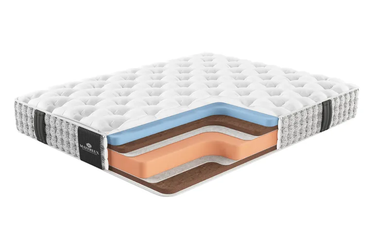 Матрас с ортопедическим эффектом MaterLux Pisa из элитной коллекции VIP — беспружинная модель для тех, кто ценит идеальный баланс между поддержкой и комфортом. Мы скомбинировали материалы с разными свойствами, чтобы одна сторона давала жесткую опору, а другая — дарила расслабление. В любой момент вы можете перевернуть матрас и выбрать удобную для сна поверхность. Упругая беспружинная основа В основе матраса два плотных материала. Natural Foam Solido — высокоплотная пена, искусственный аналог натурального латекса. Обладает схожими свойствами с природным материалом — также точно адаптируется к естественным изгибам тела, равномерно распределяет нагрузку по поверхности. Feltro Termico — термофиксированный фетр из шерсти, пуха и хлопка. Мы добавили его с обеих сторон слоя Natural Foam Solido, чтобы сделать поверхность матраса еще более упругой и устойчивой к высоким нагрузкам. Материал усиливает прочность изделия, увеличивает срок службы. Комфортное наполнение сторон Наполнение сторон отличается, поэтому отличаются их свойства. Одна сторона средней жесткости, другая — жесткая. Schiuma Memory Comforto — вязкоэластичная пена с эффектом памяти меморикс. В отличие от любых других материалов, эта пена практически не чувствуется под телом, дает ощущение невесомости, абсолютного уюта и мягкости. Schiuma Memory Comforto размещена со стороны средней жесткости. Supporto Naturale Plus — слой высокоплотной премиальной кокосовой койры, с одной стороны койра под мемориксом, с другой — сразу под чехлом. Кокосовый слой придает матрасу жесткость и усиливает ортопедическую поддержку.
