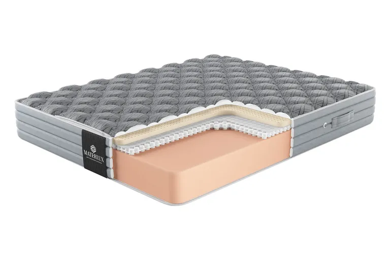Матрас с ортопедическим эффектом MaterLux Prima Latex из коллекции New Elite — баланс комфорта и надежной поддержки. Созданный из премиальных компонентов, он максимально точно подстраивается под силуэт и делает сон здоровым и комфортным в любом положении. Беспружинная ортопедическая основа Natural Foam Medio — высокоэластичная пена, похожая по свойствам на натуральный латекс. В матрасе мы установили высокий блок этого наполнителя, на него приходится основная нагрузка. У пены средняя жесткость и у стороны, где она лежит непосредственно под чехлом, жесткость тоже средняя. Natural Foam Medio эластичный, но при этом упругий материал, он аккуратно подстраивается под изгибы тела, равномерно распределяет вес по поверхности матраса, поэтому позвоночник занимает физиологически правильное положение. Два компонента с анатомическими свойствами С одной стороны на ортопедическую основу мы установили пружинную систему Molla Poccola Super Protezione 1000 и накрыли ее натуральной латексной пеной Lattice Fresco Naturale. У этой стороны жесткость тоже средняя. Molla Poccola Super Protezione 1000 — эксклюзивная система с нанопружинами высотой 3 см. Пружины точечно реагируют на малейшее изменение положения тела, снижают давление поверхности на чувствительные зоны и добавляют матрасу комфорта. Для чехлов пружин мы выбрали файбертекс. Этот материал значительно превосходит бюджетные аналоги по прочности и долговечности. Файбертекс эффективно гасит вибрации и продлевает срок службы матраса. Lattice Fresco Naturale — натуральный бельгийский латекс. Он порадует вас нежной поддержкой и приятным расслабляющим эффектом. Идеальная гигиена спального места Все материалы этого матраса соответствуют высоким требованиям гигиеничности и экологической безопасности. Латекс защищает матрас от микроорганизмов. Непрерывная вентиляция пористых наполнителей эффективно предотвращает накопление запахов и влаги, поддерживает приятную температуру и ощущение свежести на протяжении всей ночи.