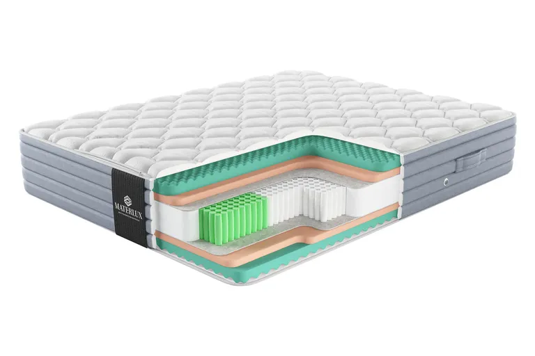 Высокий матрас с ортопедическим эффектом MaterLux Venice Maxi создаст мир полного релакса и восстановления прямо у вас дома. Благодаря массажному эффекту, модель подарит неповторимые ощущения комфорта, а продуманная ортопедическая система будет надежно поддерживает позвоночник. Ортопедический эффект блока пружин Для этой модели мы выбрали премиальную пружинную систему Molla Super Protezione 1000. Пружины моментально откликаются на изменения нагрузки и смену позы, точно подстраиваются под контуры тела, удерживают позвоночник в естественном, анатомически правильном положении. Чехлы для пружин изготовили из файбертекса — материала, который значительно превосходит бюджетные аналоги по прочности и эластичности. Благодаря его способности эффективно поглощать вибрации и сохранять целостность даже при интенсивных нагрузках, матрас сохраняет полезные свойства до 20 лет. Расслабляющий эффект микромассажа У обеих сторон матраса средняя жесткость и одинаковое наполнение. Это позволит вам наслаждаться привычным комфортом, даже когда придет время перевернуть матрас. Schiuma Effetto Massaggio — высокоэластичная пена с текстурированной поверхностью создает расслабляющий массажный эффект. Уютный материал размещен верхним слоем сразу под чехлом с обеих сторон матраса. Natural Foam Medio — искусственная пена, похожая по свойствам на натуральный латекс. Пена эластичная, но при этом упругая, она лежит под массажным слоем для более устойчивой поддержки тела. Обе пены гипоаллергенны, что делает матрас идеальным для людей с повышенной чувствительностью. Дополнительные материалы для прочности матраса Feltro Termico — плотный термофиксированный фетр из шерсти, пуха и хлопка. Мы прокладываем слой фетра между пружинами и наполнителями. Материал защищает слои от давления пружинами, поэтому матрас служит дольше, сохраняет упругость и ортопедические свойства. Короб из пены Natural Foam Solido — плотная пена по периметру блока пружин и слоев наполнителей. Усиливает края матраса.